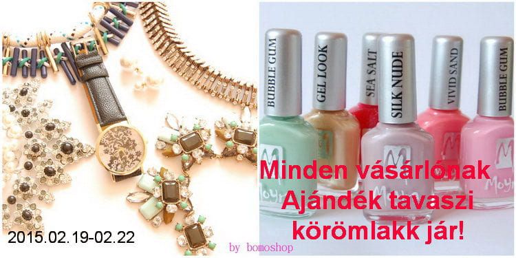 Minden kedves vásárlót egy szuper, tavaszias színű, az ékszerhez harmonizáló körömlakkal ajándékozunk meg.