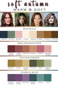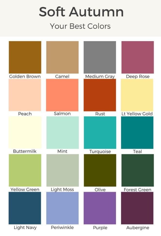 Ami azt jelenti, hogy a másodlagos évszaka a nyár. A lágy ősz tipusúakat a hidegebb nyári színhatás tompítja, finomabbá teszi. A legvisszafogottabb ősztípus a másik két ősztípustól. Színei füstösek, fátyolosak, tompábbak. Lágy, nemes, meleg visszafogottság jellemzi őket. A színeid tompák, melegek, közepesen sötétek.