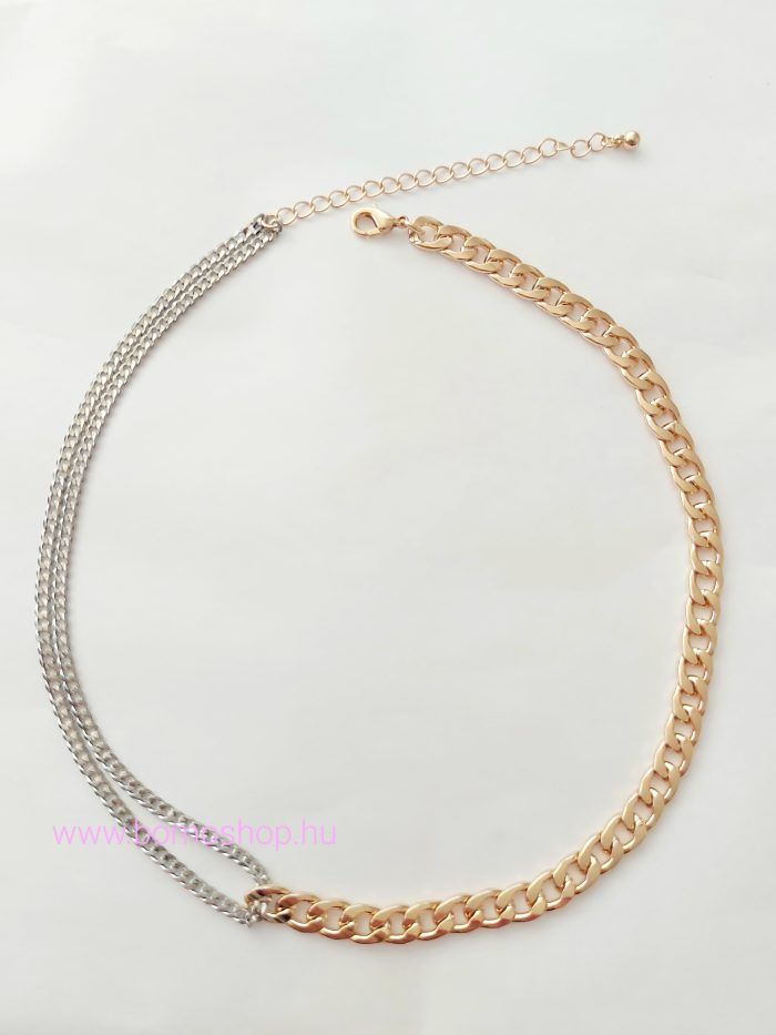 Különleges divatékszer, egyik fele dupla ezüst színű láncból áll.