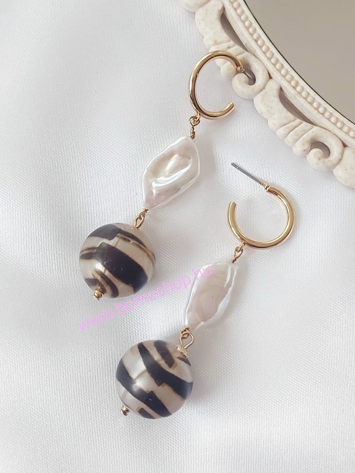 - Jodi hosszabb szürke golyó fülbevaló barnás mintával.