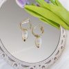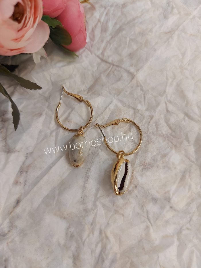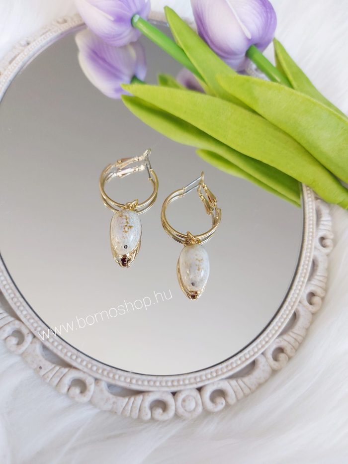 Szürkés fényes kagyló hatású , arany színű fülbevaló.