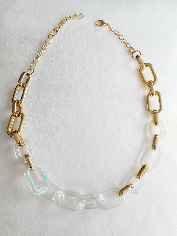 Arany színű műanyag láncszemekkel.