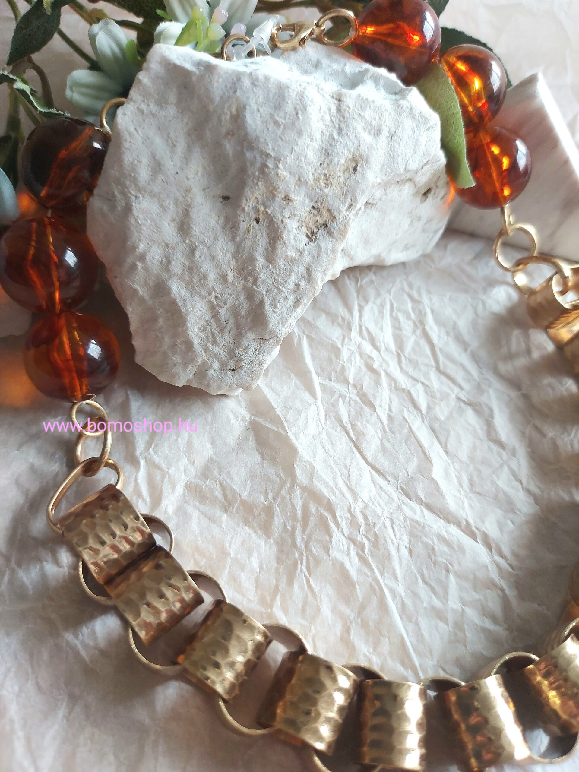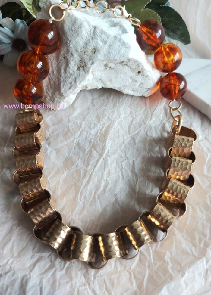 Nikola borostyánsárga színű nagyobb golyókból álló különleges nyaklánc.