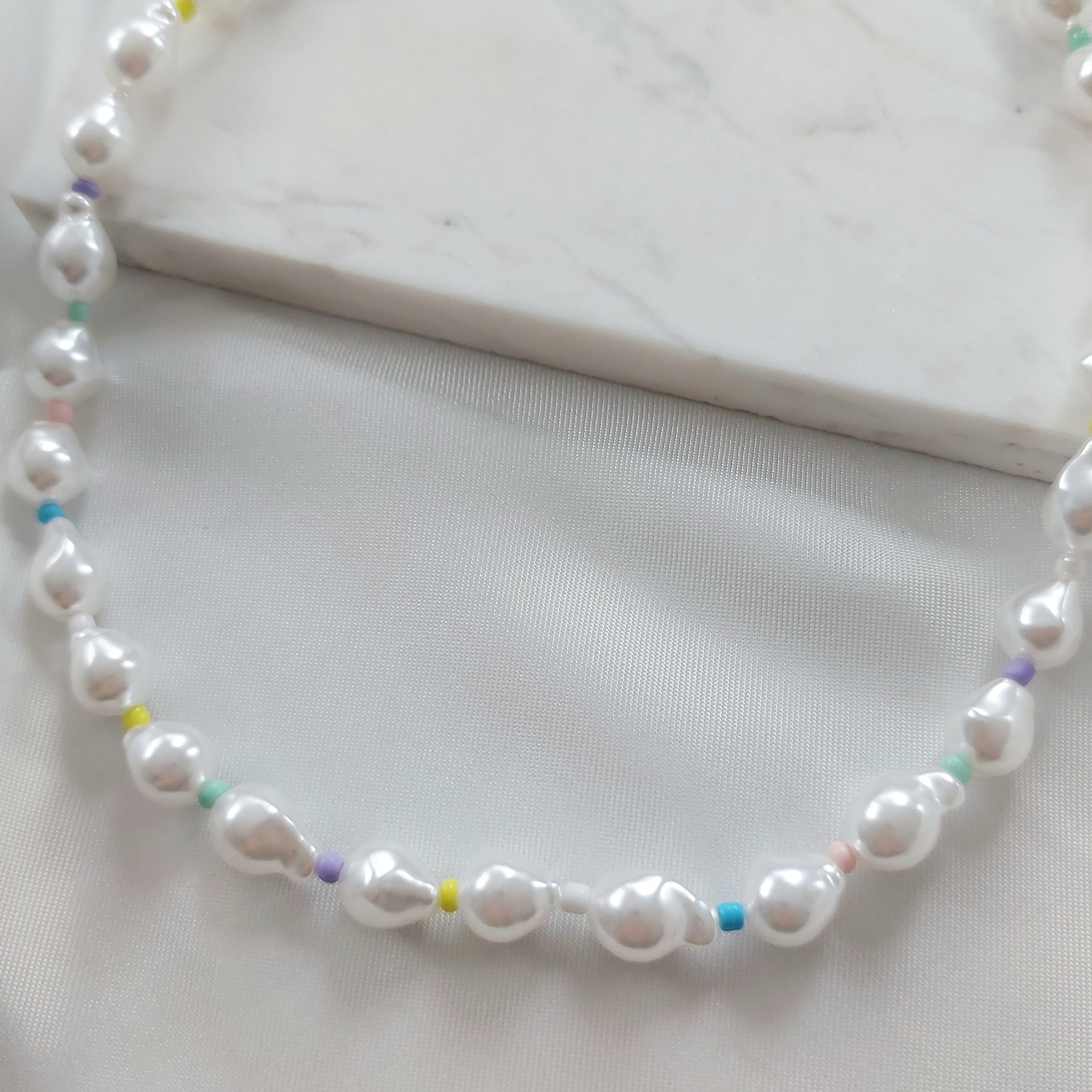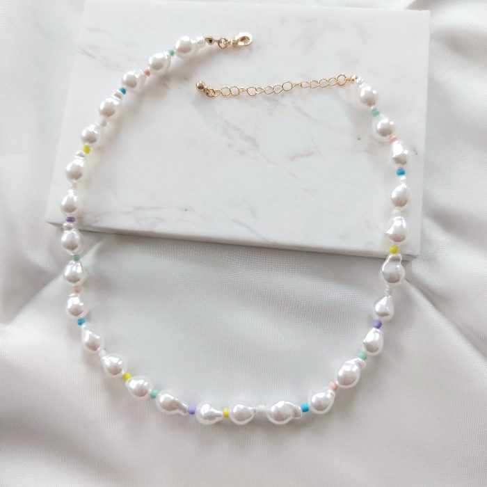 Pearl gyöngyös nyaklánc, apró színes gyöngyökkel díszítve.
