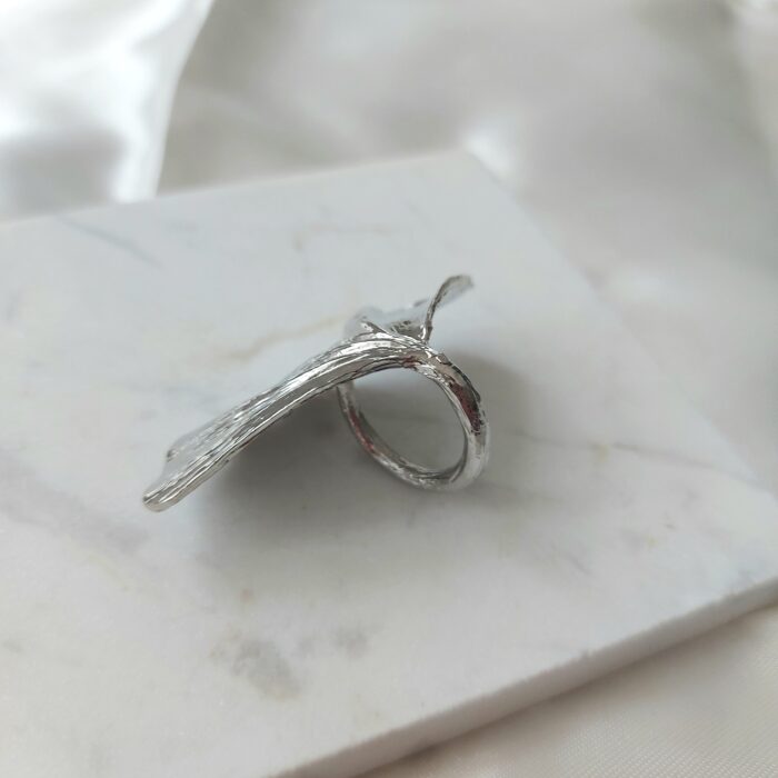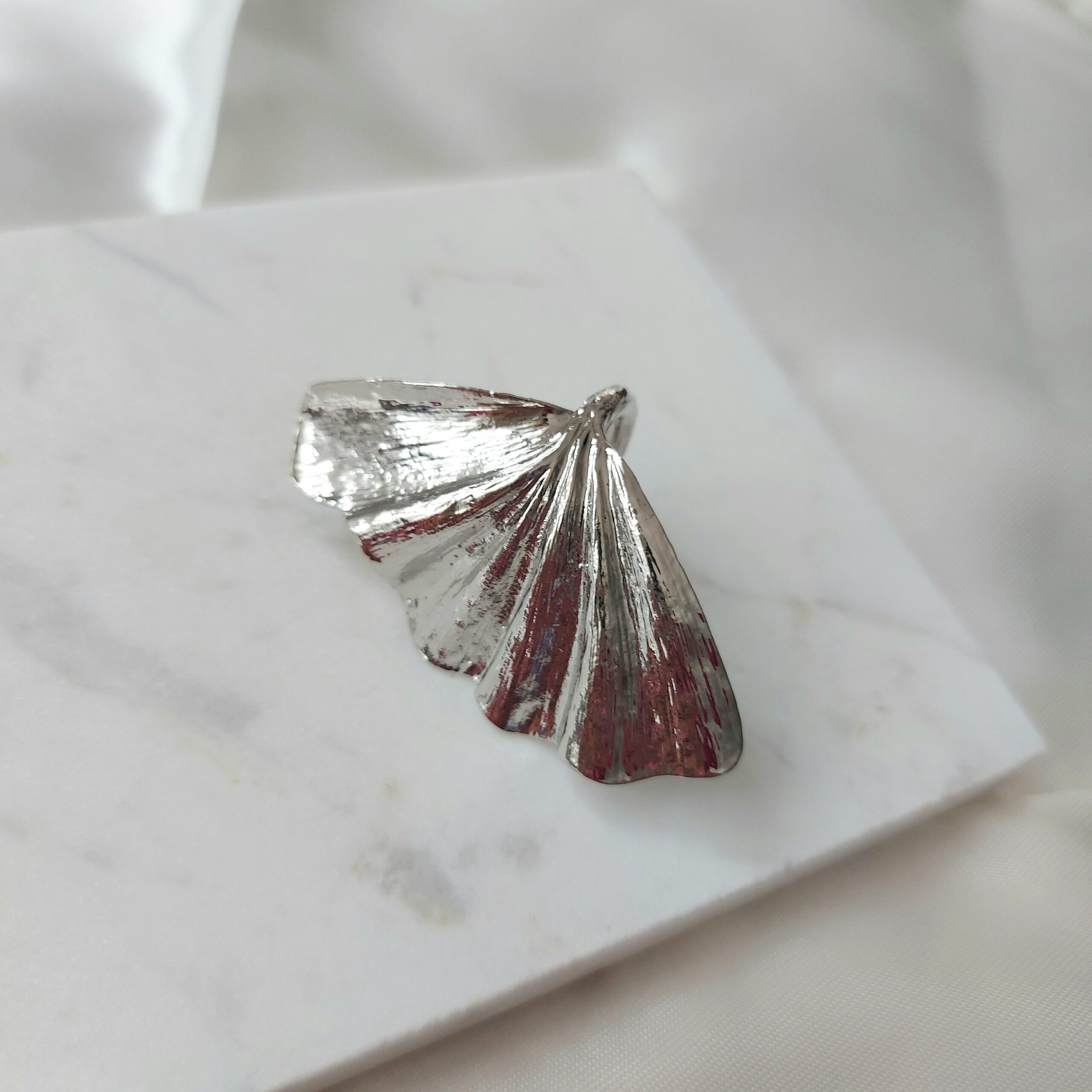 Fél pillangószárny formájú ezüst színű gyűrű.