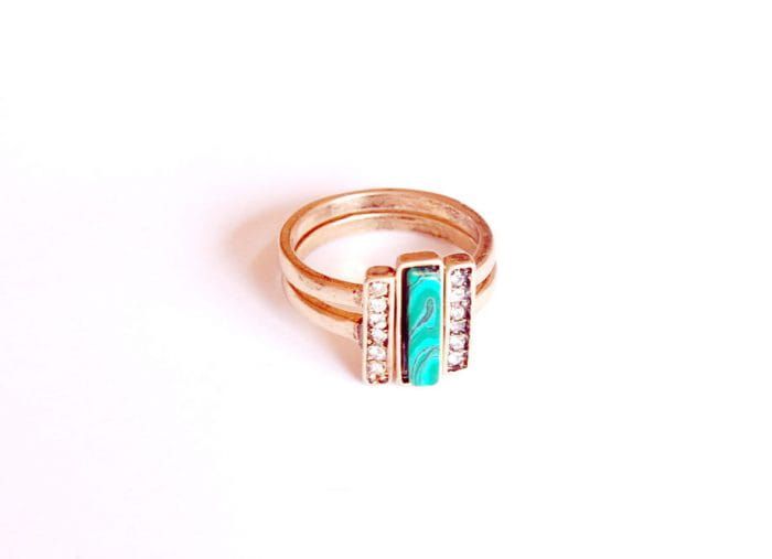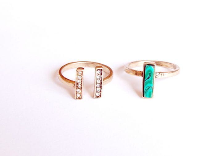 Egyik gyűrű clear kövekkel kirakva , a másik zöld színű köves.