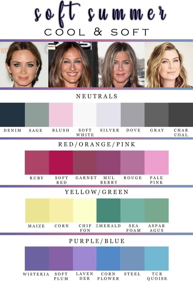 A lágy nyár színtípus másodlagos évszakja az ősz. Erre a színtípusra a finom elegancia, szolid, matt misztikusság jellemző. Igen gyakori típus!